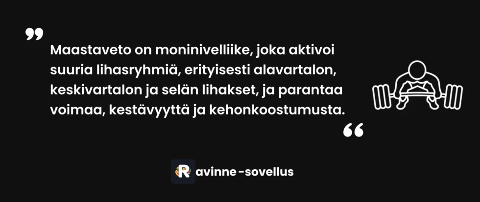 Maastaveto on kokovartaloliike, joka aktivoi enemmän lihasmassaa kuin mikään muu yksittäinen harjoitus. Systemaattinen katsaus osoitti, että selän ojentajat ja etureidet ovat aktiivisimpia lihaksia maastavedon aikana, mutta myös pakarat, takareidet ja keskivartalo työskentelevät intensiivisesti [2].