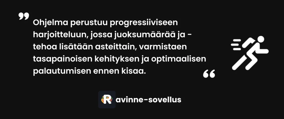 📖 Lue myös: 10 km juoksuohjelma aloittelijalle