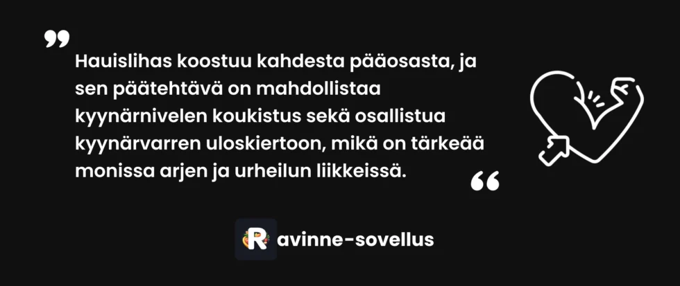 Hauiksen lisäksi kyynärvarren koukistukseen osallistuvat brachialis (olkavarren lihas) ja brachioradialis (värttinäluun puoleinen lihas). Brachialis sijaitsee hauiksen alla ja sen kehittäminen "nostaa" hauista ylöspäin, mikä lisää käsivarren paksuutta sivulta katsottuna.