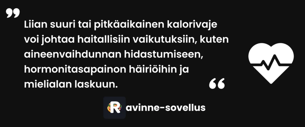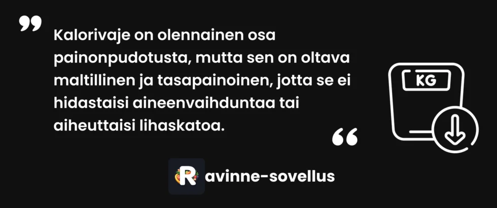 Kalorivaje on painonpudotuksen perusta, mutta sen toteutuksessa on huomioitava monta tekijää. Maltillinen 300-500 kcal päivävaje tuottaa kestävän 0.5 kg viikottaisen painonpudotuksen minimoiden samalla lihaskadon ja metabolisen adaptaation riskit.