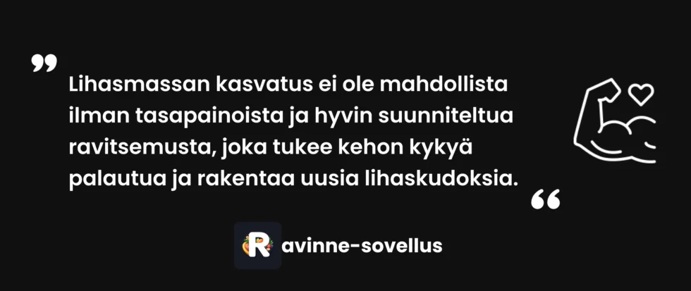 Lihasmassan kasvatus ruokavaliolla vaatii oikean kalorimäärän, proteiinin ja ajoituksen. Tutkitut suositukset makroille, ateriarytmille ja bulkkaukselle.