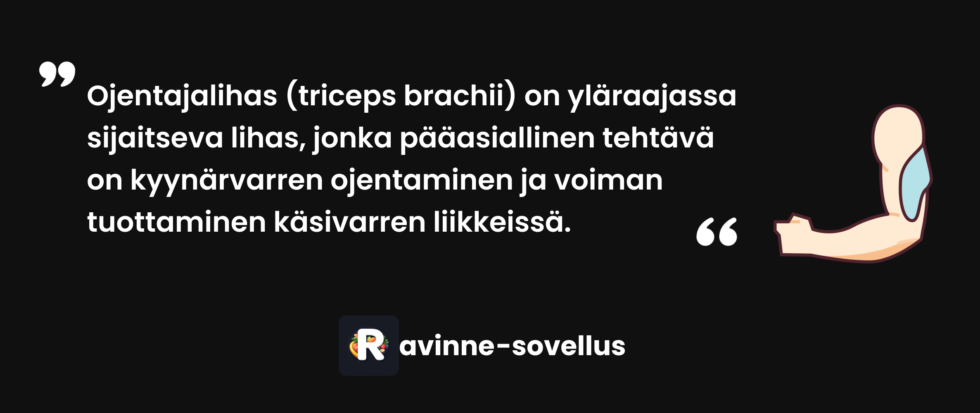 - 1.Maeo et al. (2022). Triceps brachii hypertrophy is substantially greater after elbow extension training performed in the overhead versus neutral arm position. European Journal of Sport Science. [Lähde]