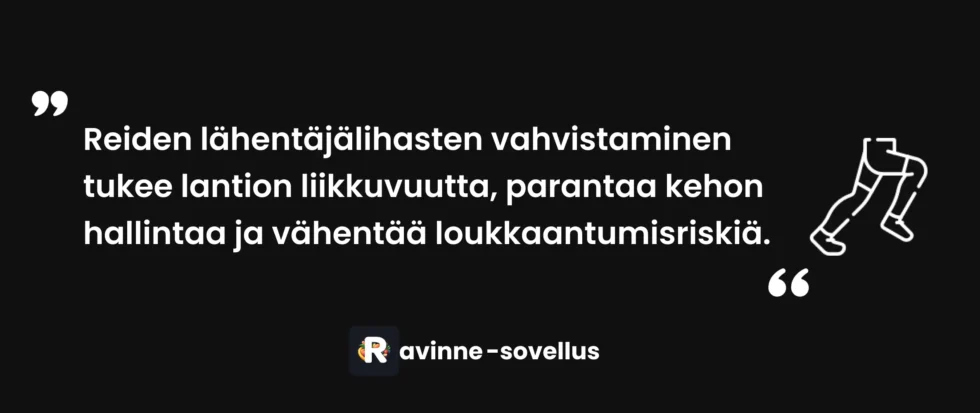 Reiden lähentäjälihakset stabiloivat lantiota ja tuottavat voimaa. Tutkittu harjoitusopas – anatomia, parhaat liikkeet ja esimerkkiohjelma vammojen ehkäisyyn.