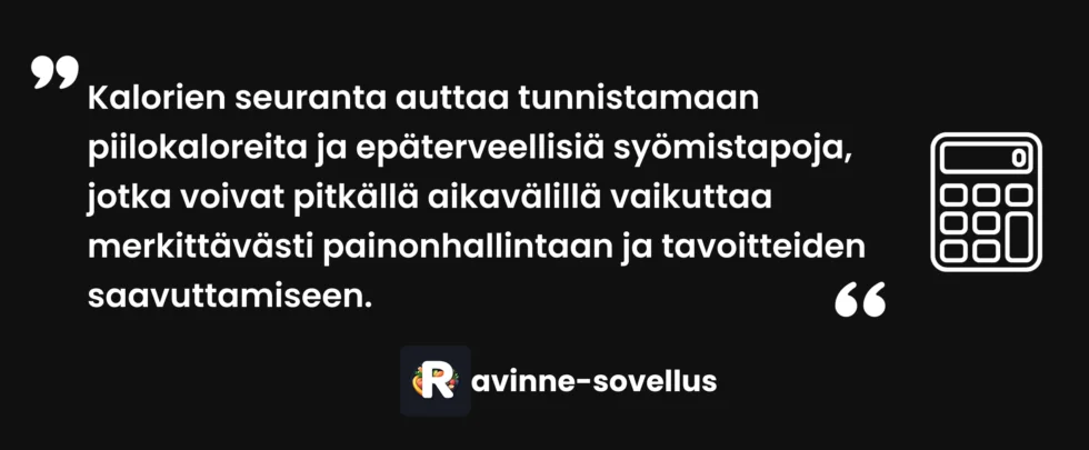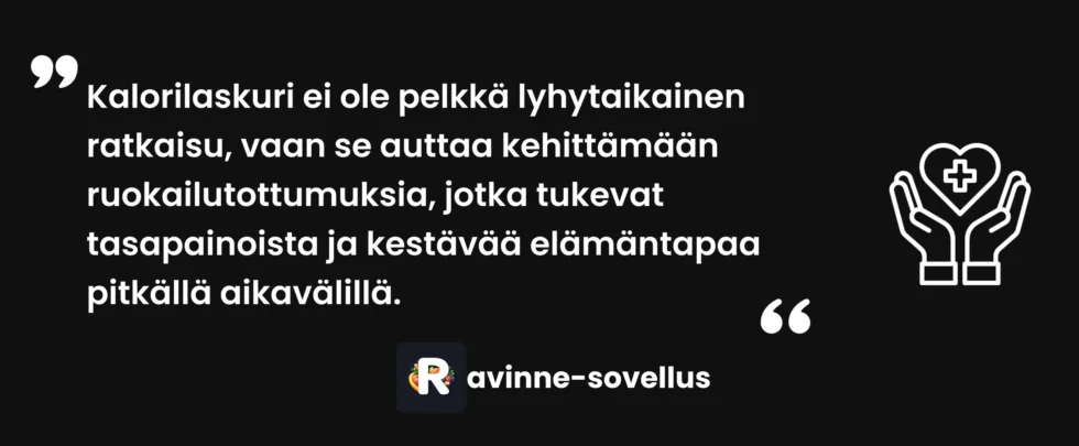 Kalorilaskuri on työkalu, ei elämäntapa. Tavoitteena on oppia tunnistamaan annoskoot ja ruokien energiatiheys niin hyvin, ettei jatkuva kirjaaminen ole enää välttämätöntä.