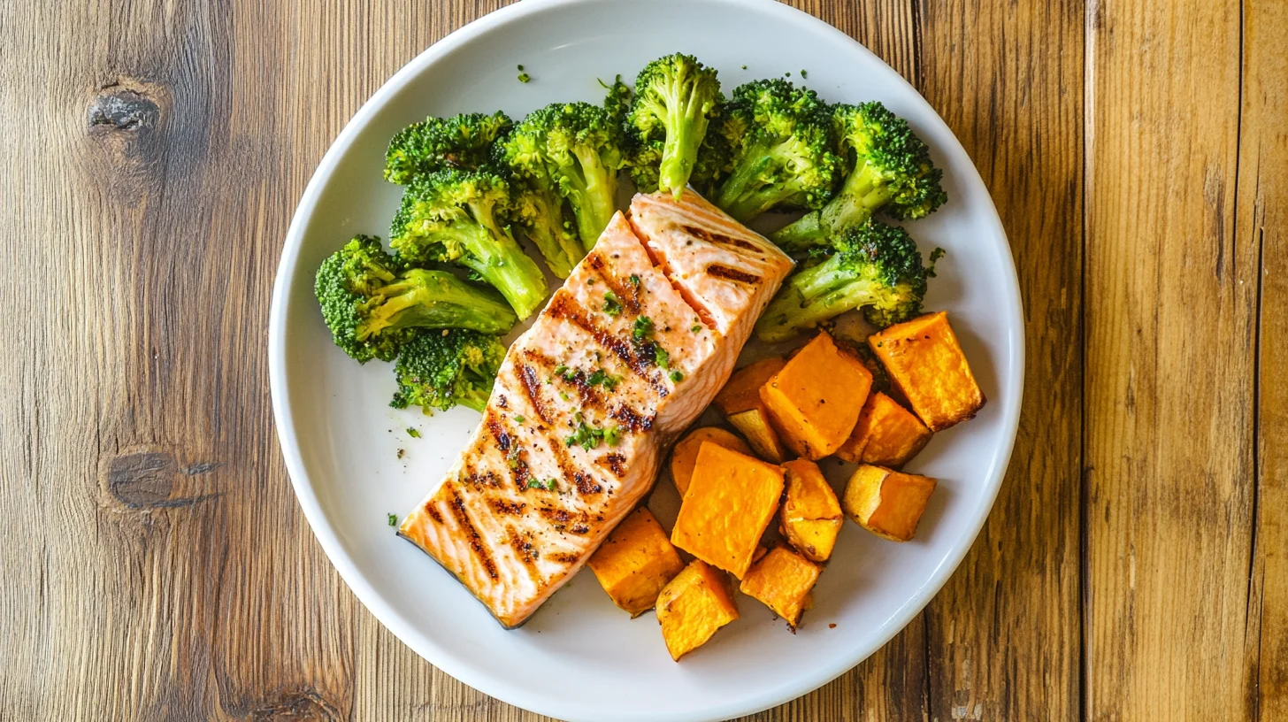 | Päivällinen | Kirjolohifile + täysjyväriisi + parsakaali | 400 kcal | 35 g |