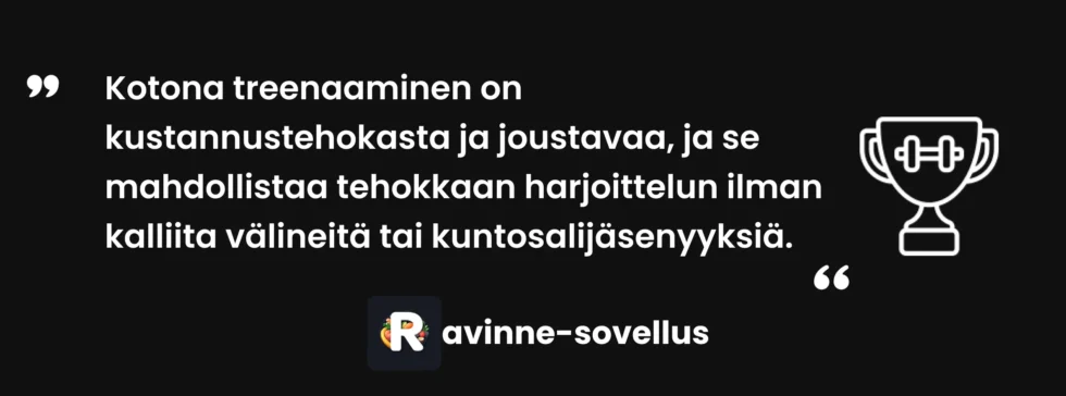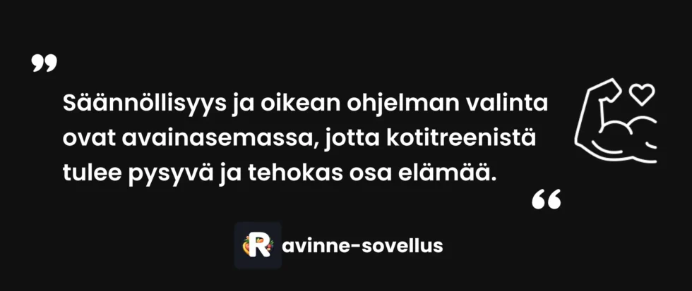 Muista: johdonmukaisuus voittaa täydellisyyden. Kolme 20 minuutin kotitreeniä viikossa on parempi kuin suunnitelma kuudesta tunnin harjoituksesta, jota et koskaan toteuta.